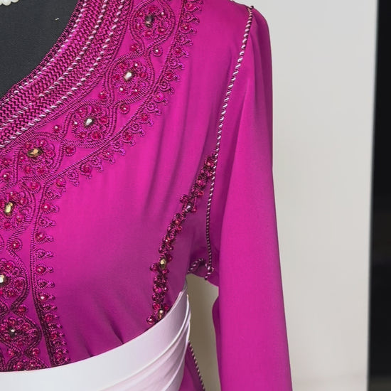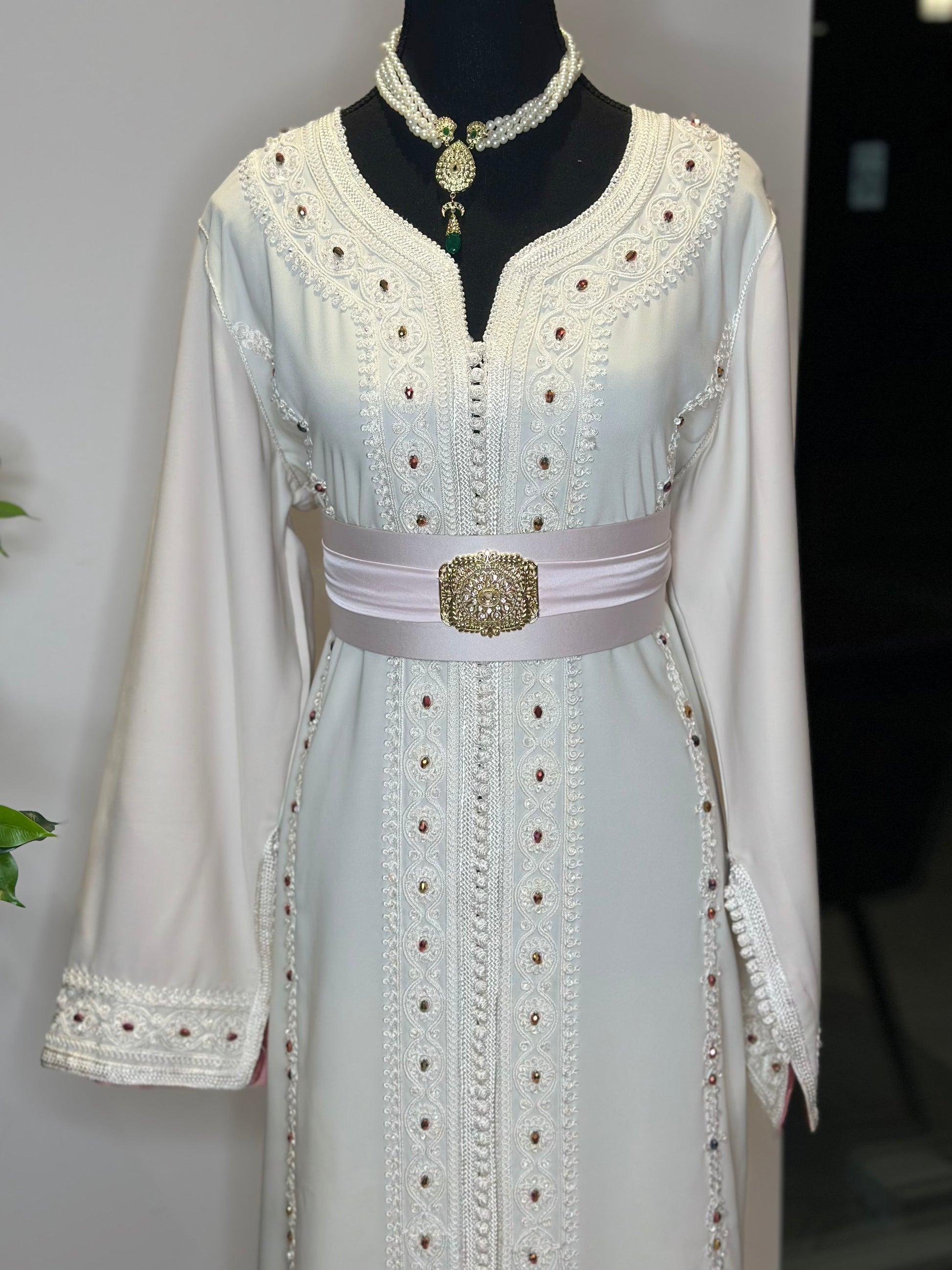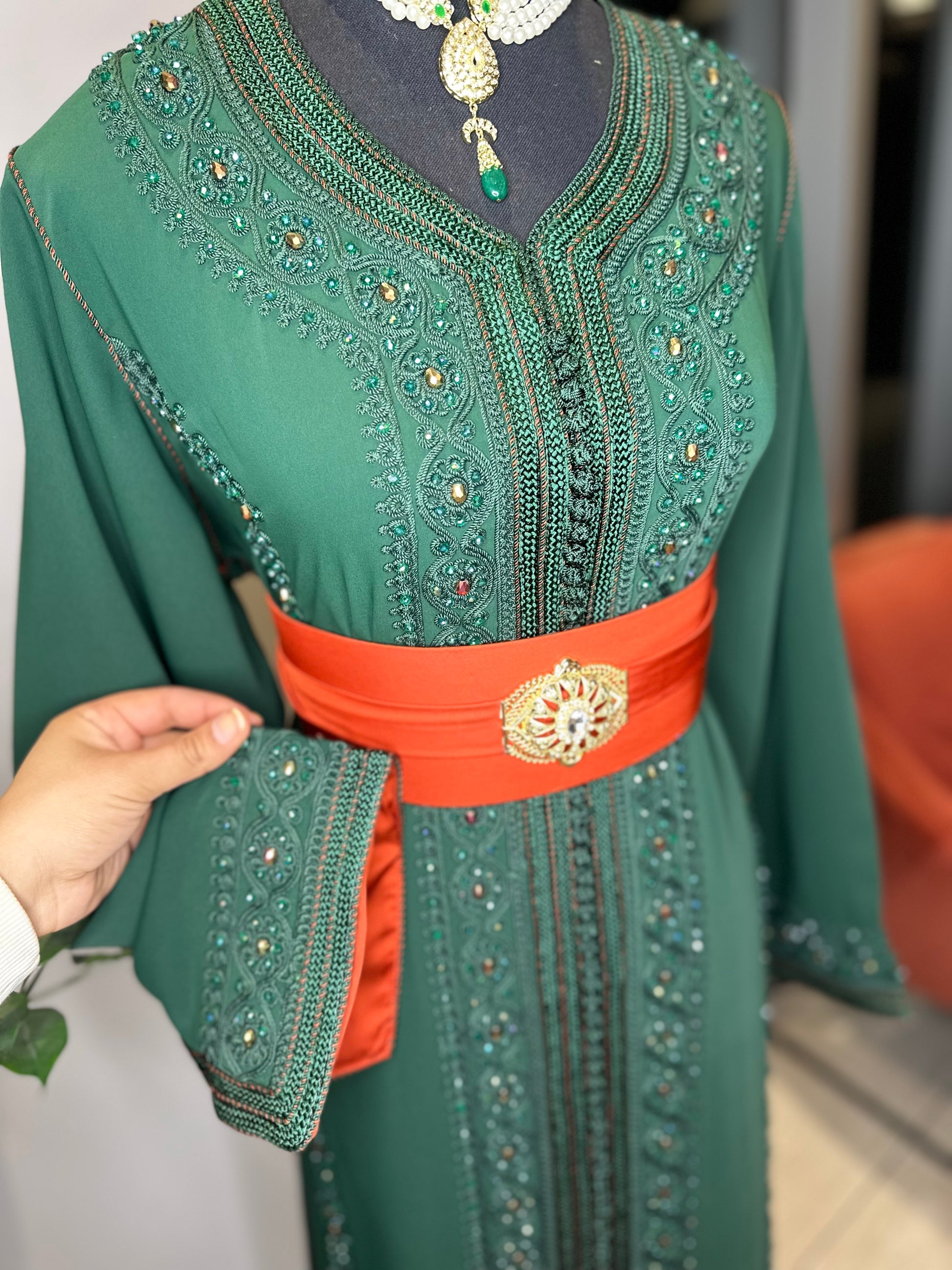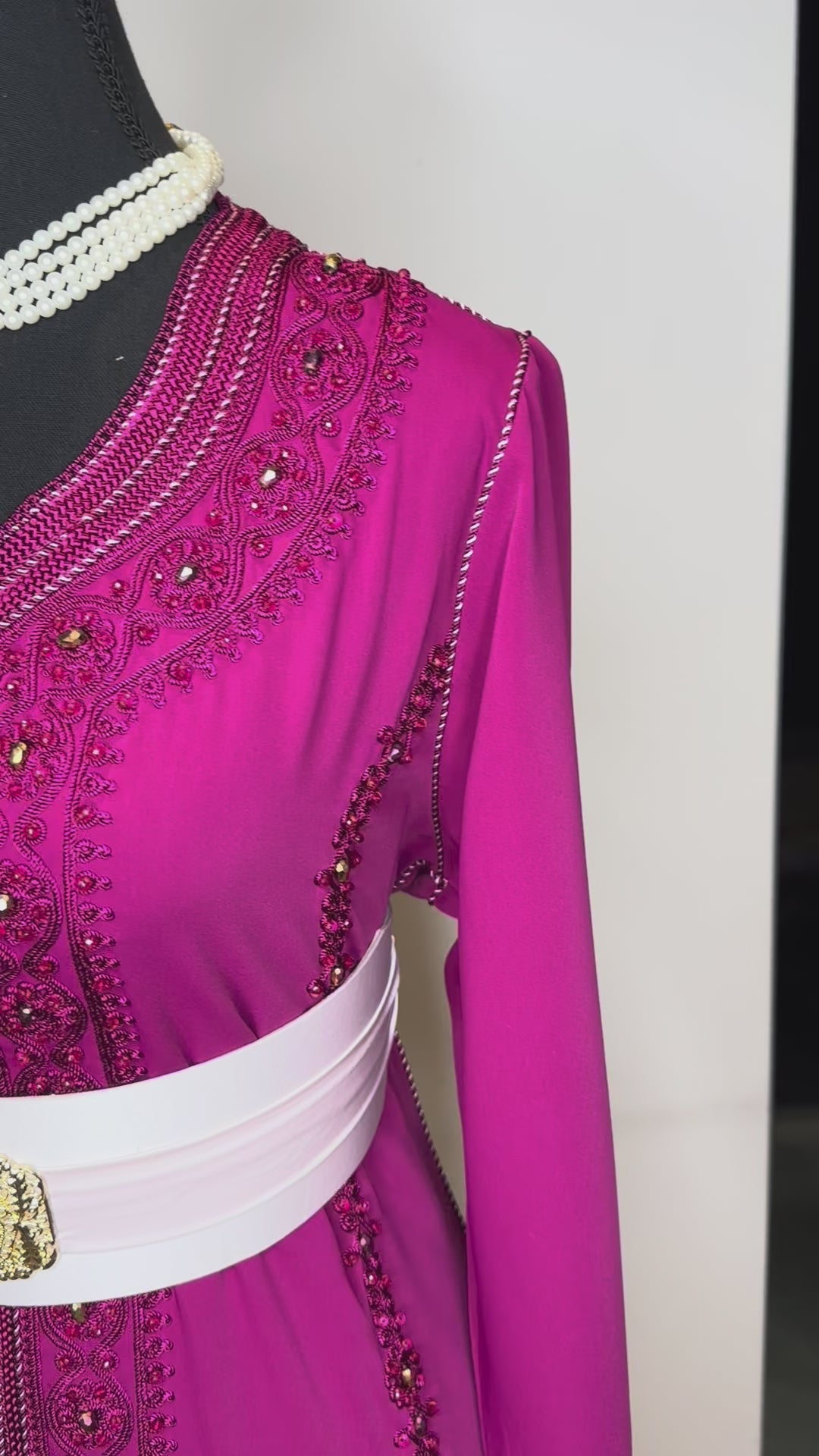 Découvrez l’élégance intemporelle de notre caftan en crêpe, disponible en cinq couleurs éclatantes. Ce modèle raffiné est orné de délicates touches de perlage, réalisées avec un savoir-faire artisanal unique. Il est livré avec une ceinture gratuite, ajoutant une touche de sophistication à votre tenue. Confortable et élégant, ce caftan incarne parfaitement le mélange entre tradition et modernité.